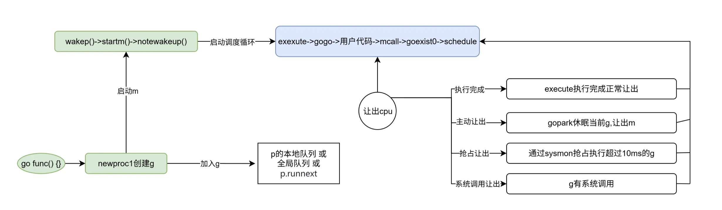 意义:解决任务分配不均问题。全局队列中的 g 可能来自阻塞恢复或新建的跨 p 任务,启动新 m 可避免全局队列任务因无 p 处理而饥饿;