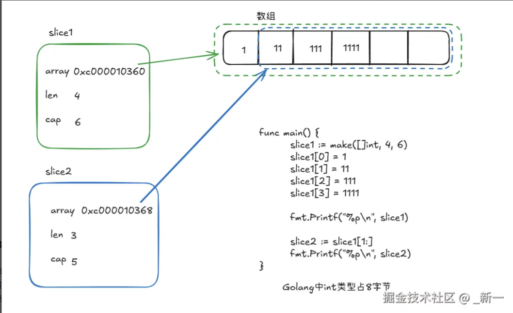 arr := make([]int, 3, 4) //创建一个长度为3,容量为4的切片