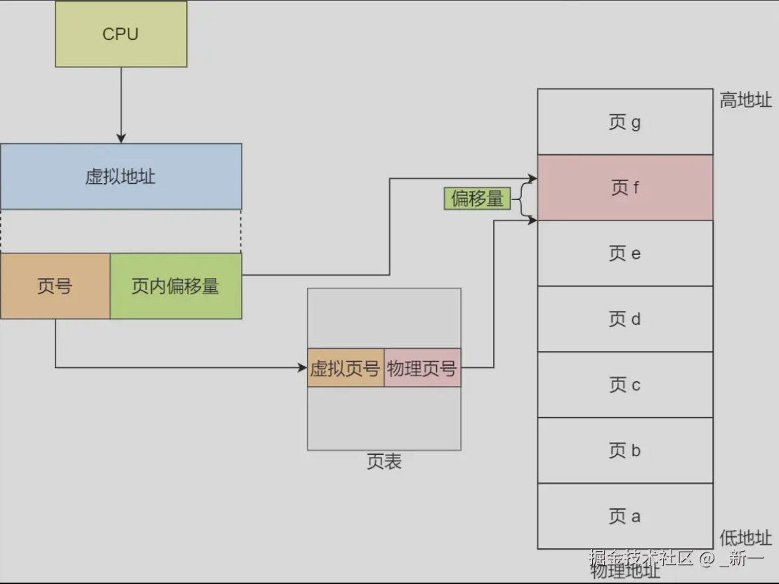 在分页机制下虚拟地址分为两个部分,页号和页内偏移,然后页号在页表中有个映射关系,对应的就是物理内存中的基地址,找到对应关系后再加上页内偏移量就找到了物理地址;