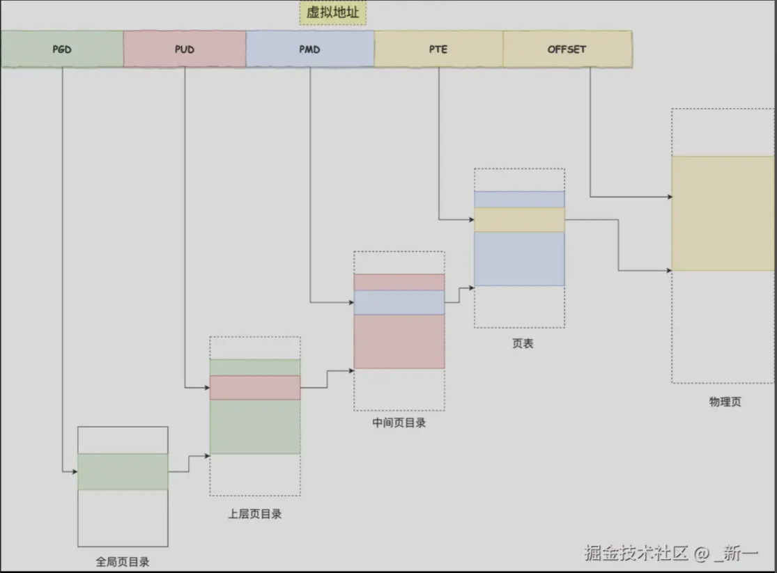单级页表的产生是为了解决分段机制带来的那两个问题的,分页把整个虚拟内存和物理内存切分成一段段固定大小的页,在32位操作系统中每一页的大小为4KB(这个大小与硬件架构和历史原因、内存对齐等原因有关不赘述)。