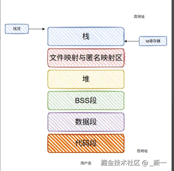 - 栈段,包括局部变量和函数调用的上下文等。栈的大小是固定的,一般是